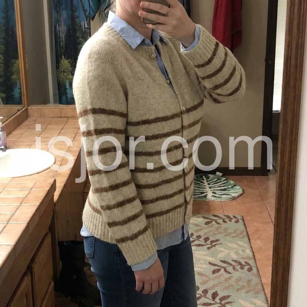 This Apricot Long Sleeve Striped Cardigan is a versatile addition to any wardrobe. Perfect for cooler days, it features a timeless striped design and long sleeves for added warmth. Made from high-quality materials, it's both comfortable and stylish, making it the perfect option for everyday wear. With its classic design and practical features, this cardigan is a must-have for any fashion-forward individual.